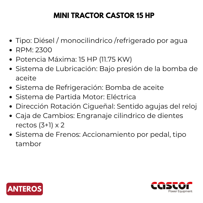 El Tractor Agrícola Castor de 15 Hp es una herramienta que optimizará las tareas del campo y aumentará la productividad de su negocio.